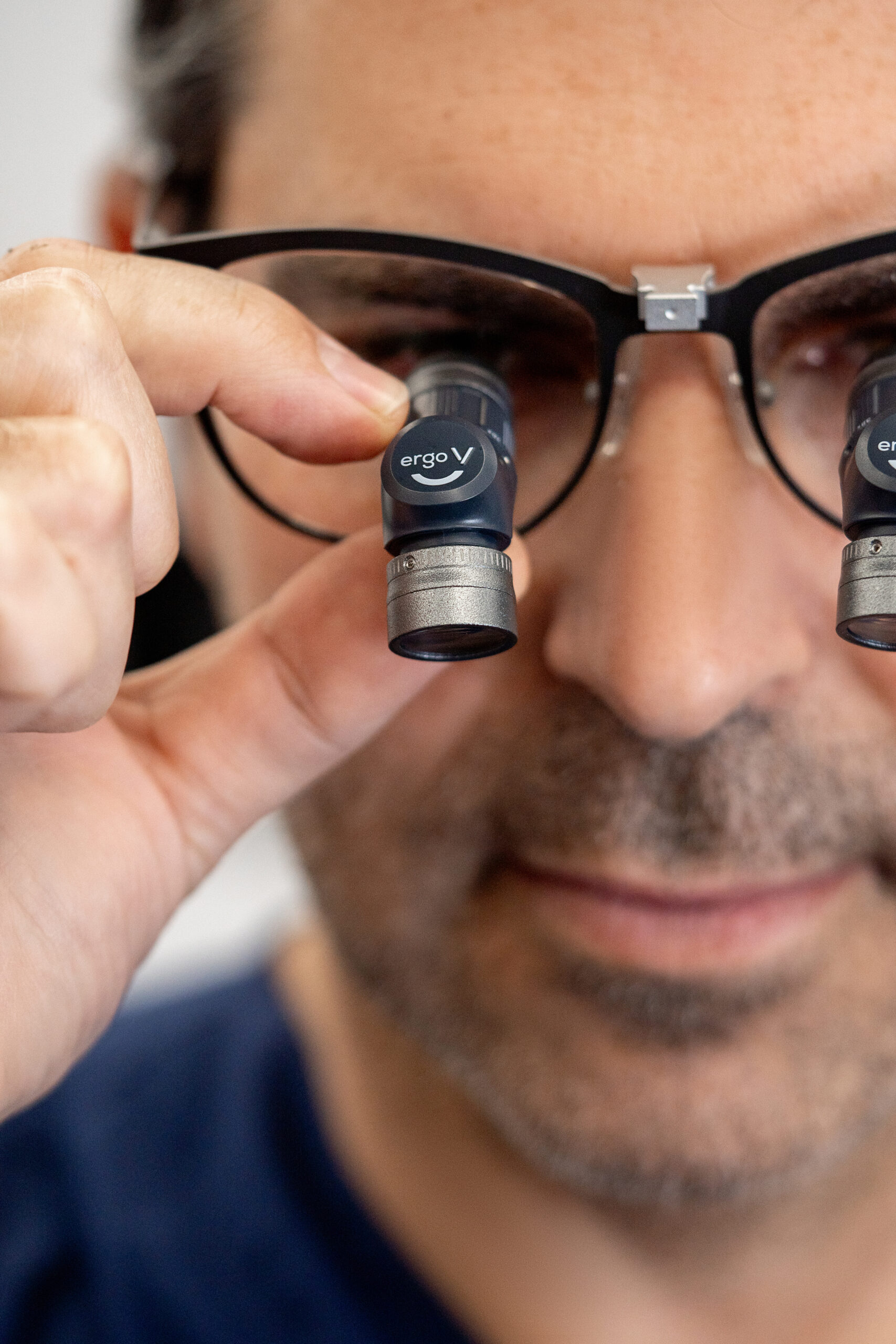 Ergo V™ associe le design ergonomique d’Admetec et un grossissement réglable, vous permettant de conserver une posture neutre, de réduire les douleurs au cou et au dos et de passer sans effort entre trois niveaux de zoom. Un seul appareil qui soutient votre corps et élève votre précision clinique.